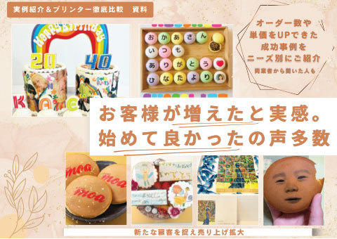 例えば引用画像のようなお客様から預かった顔のデータがお菓子になるような、貴店独自の唯一無二のユニークなアイデアで話題性を高め、他店では真似できない、価格競争に巻き込まれないオンリーワンのオーダープリントサービスにすることができます。